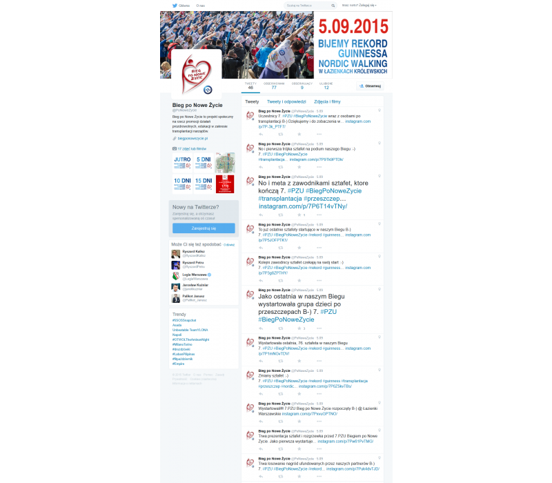 Run for New Life is an initiative which aims to support and promote Polish transplantation. The event consisted of two parts. The first was to beat the Guinness Record in the number of people participating in the competition of Nordic walking. The record has been beaten - more than 1,700 runners reached the finish line.