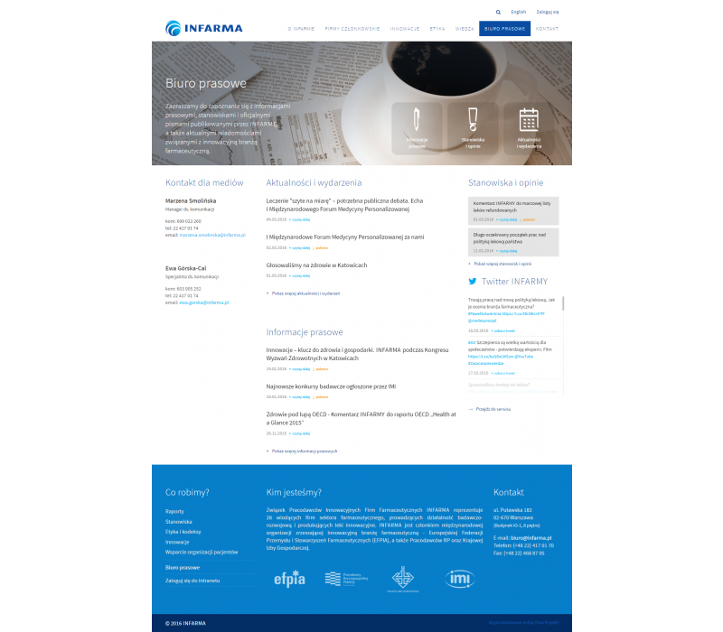 In collaboration with Studio 2x2, wich was responsible for graphic design, we prepared a website for INFARMA - Union of Innovative Pharmaceutical Companies.
