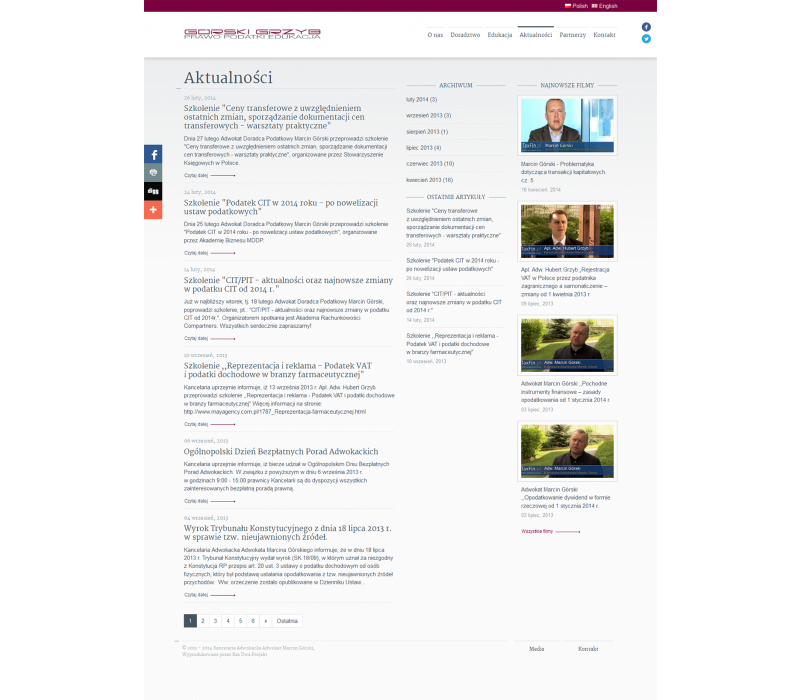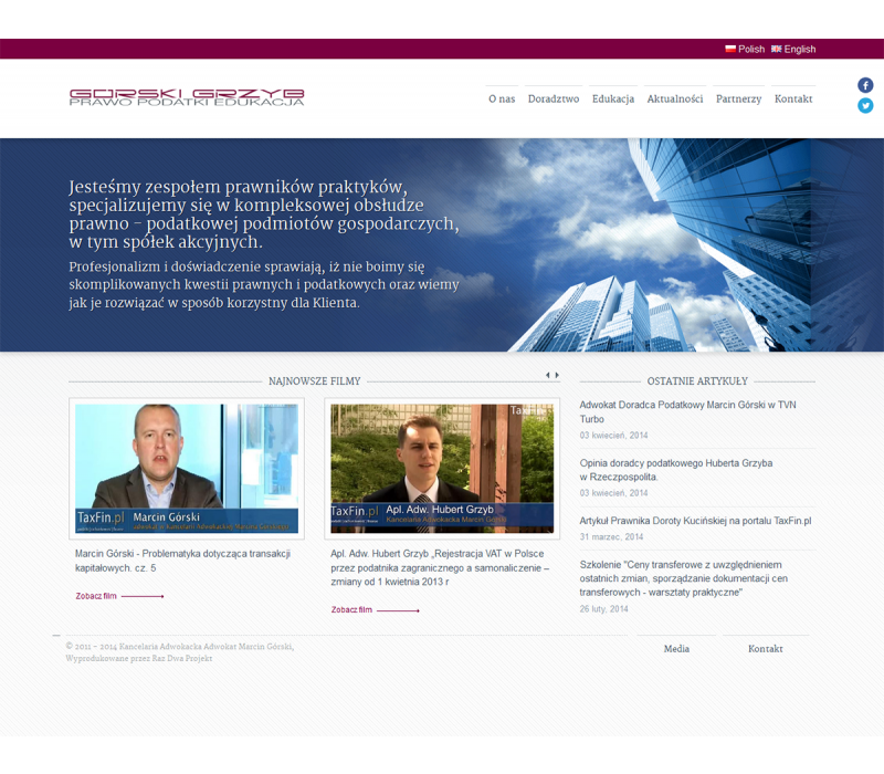 Górski Law Office asked us to create a new company website. We created website available in two languages, containing information, multimedia, news and contact forms.