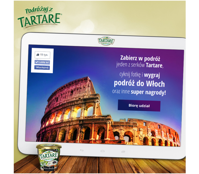 In September 2014 we conducted an additional big contest in a dedicated application. Users were asked to take Tartare cheese for a journey and take a picture of a product. We gathered 180 photos, with more than 7000 votes. The contest communications reached over 1 million users.